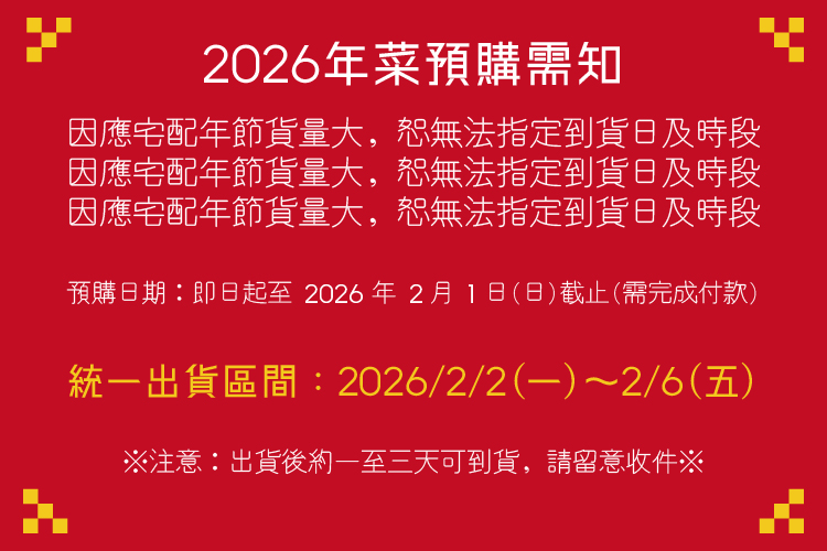 ※年節期間(節日前三週)恕無法指定到貨日及時段。